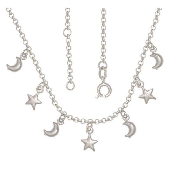 Gargantilha De Prata Com Estrelas E Luas Com Alongador 5Cm
