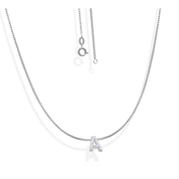 Gargantilha De Prata Com Pingente Letra A Pequena Cravejada 45Cm