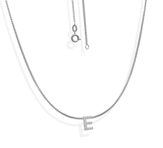 Gargantilha De Prata Com Pingente Letra D Pequena Cravejada 45Cm