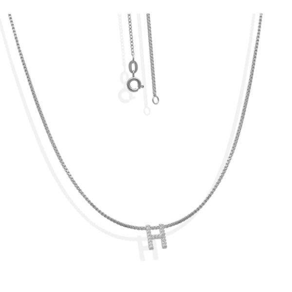 Gargantilha De Prata Com Pingente Letra H Pequena Cravejada 45Cm