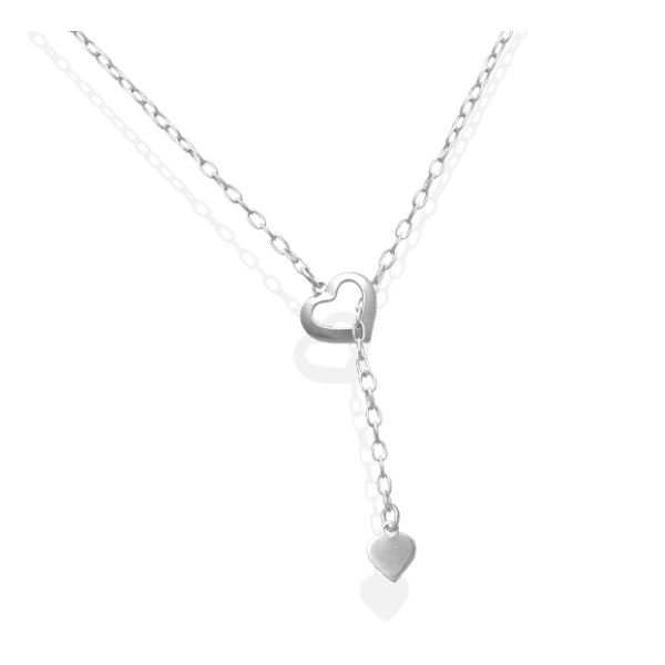 Gargantilha De Prata Forquinha Com 2 Corações 60Cm