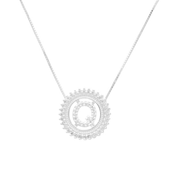 Gargantilha De Prata Mandala Com Zircônias Letra Q