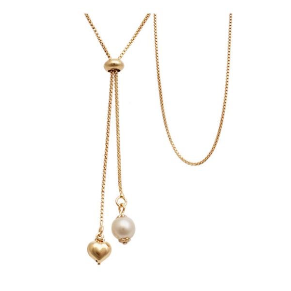 Gargantilha Gravatinha Com Pérola E Coração Duplo