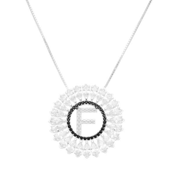 Gargantilha Mandala Letra F Com Zirconias