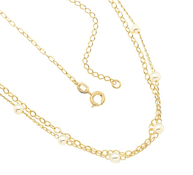 Gargantilha Meio Duplo Com Perola E Corrente Losango Facetado