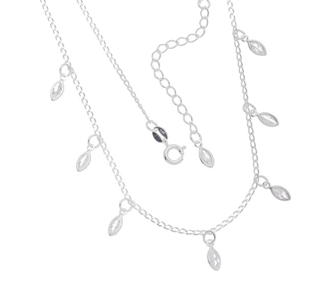 Gargantilha Prata Com 7 Pedras Navete Cristal