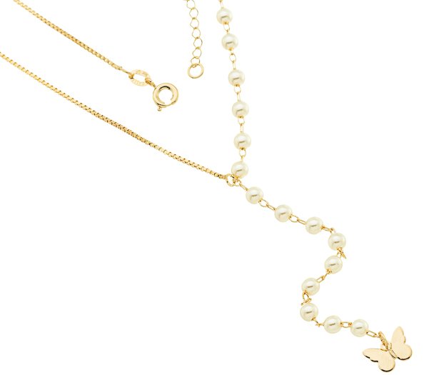 Gargantilha Veneziana Perola Elo Longo Com 2 Borboleta