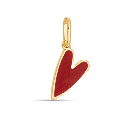 Pingente Coração Comprido Com Resina Vermelha 12Mm