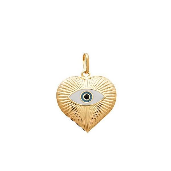 Pingente Coração Duplo Diamantado Com Olho Grego Branco Azul Preto