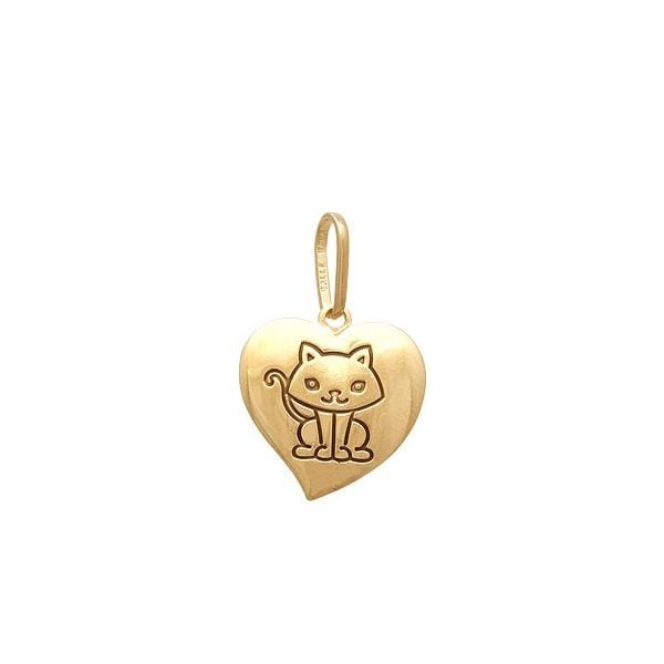 Pingente Coração Estampado Gato Com Resina 22Mm