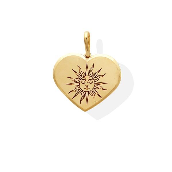 Pingente Coração Liso Reto Sol Esotérico Com Resina