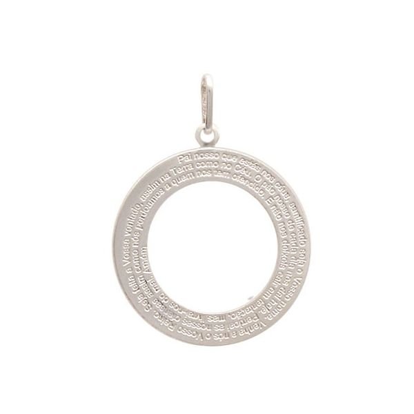 Pingente De Prata Mandala Dizeres Oração Pai Nosso 30Mm