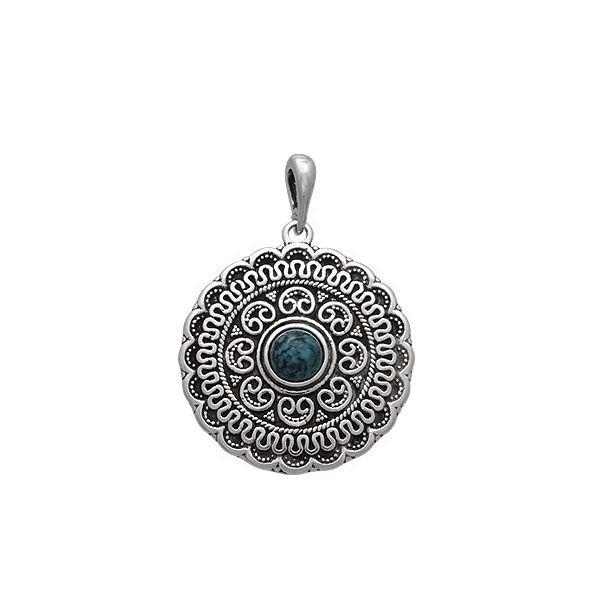 Pingente De Prata Mandala Envelhecida Com Pedra Azul Turquesa