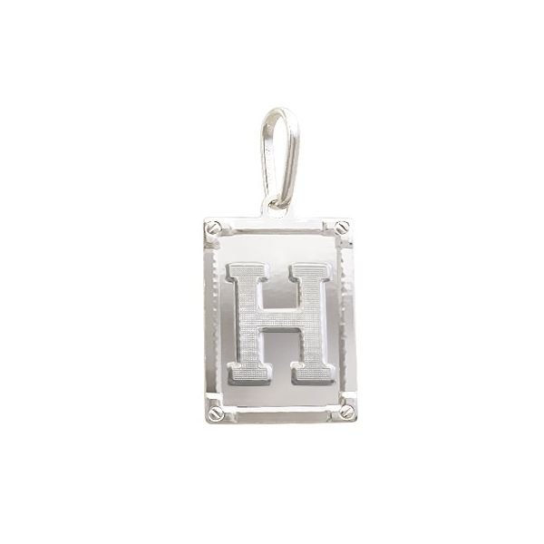 Pingente De Prata Retângulo Letra H
