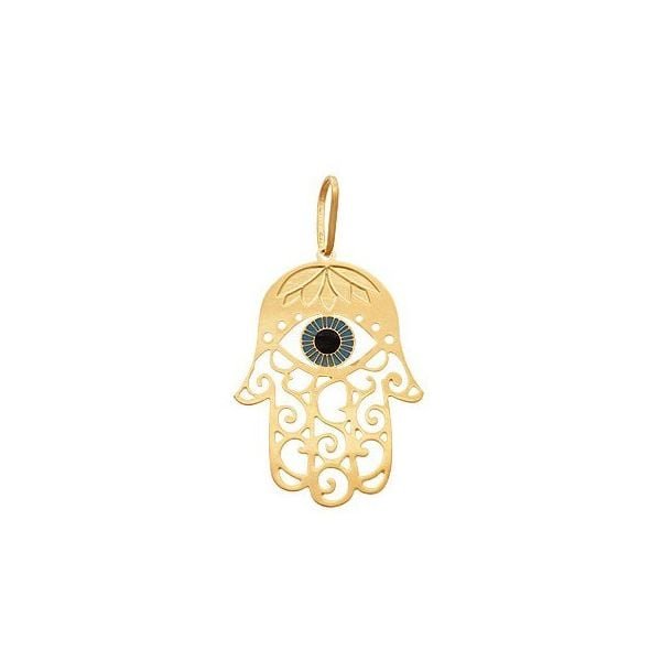Pingente Mão Fátima Vazado Branco Azul Preto