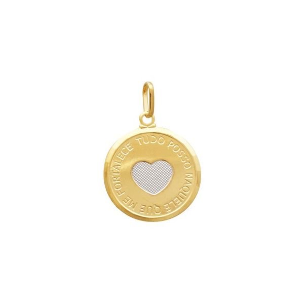 Pingente Medalha Com Coração Tudo Posso Naquele Que Me Fortalece Com Ródio