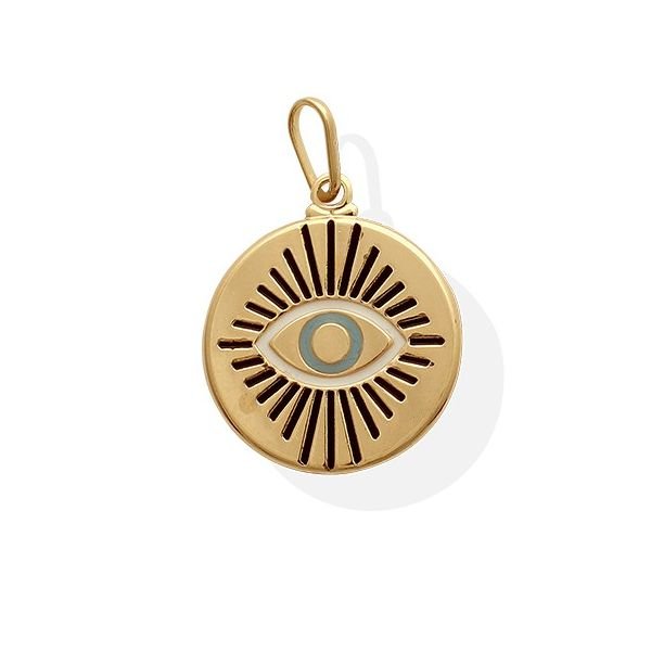 Pingente Medalha Olho Grego Preto Branco Azul Com Raios