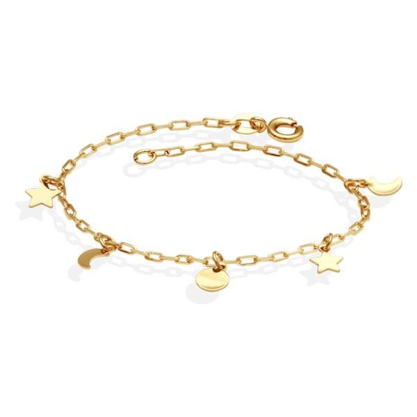 Pulseira Cartie Com 1 Redondo 2 Luas 2 Estrelas Lisas Retas 18Cm
