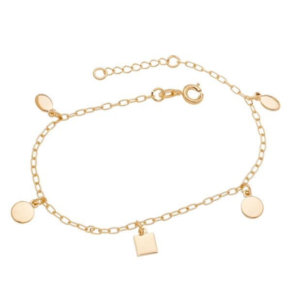 Pulseira Com 1 Quadrado 2 Redondo 2 Oval 6Mm Lisos Maciços 18Cm