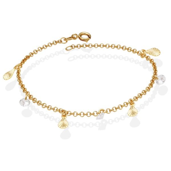 Pulseira Com 3 Zircônias 4 Gotas Diamantadas 18Cm