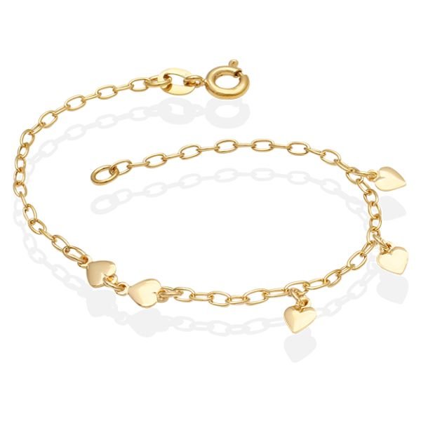 Pulseira Com 5 Corações Lisos Maciços 18Cm