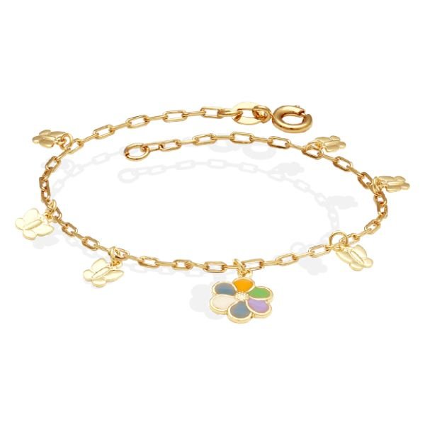 Pulseira Com 6 Borboletas 1 Flor Com Resina