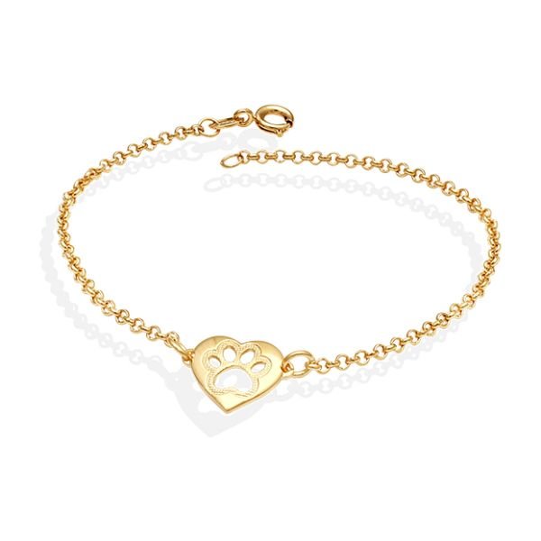 Pulseira Coração Com Pata Reticulada Vazada 18Cm