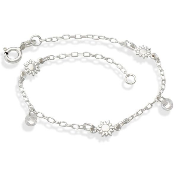 Pulseira De Prata Com 3 Sol Maciços 2 Zircônias 18Cm