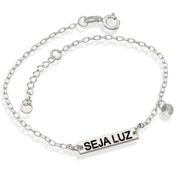 Pulseira De Prata Com Placa Seja Luz Com Zircônia 18Cm