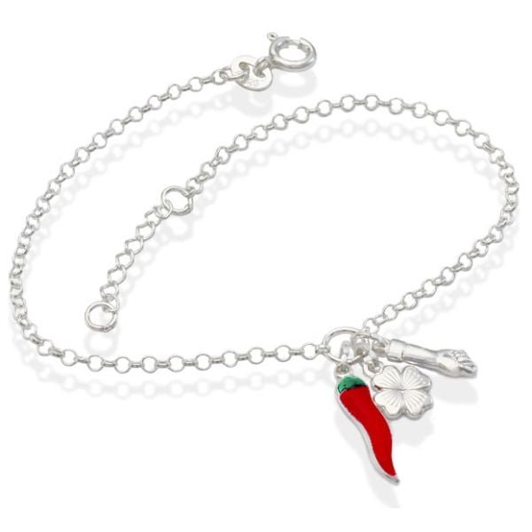 Pulseira De Prata Elo Português Com Amuletos De Proteção 18Cm