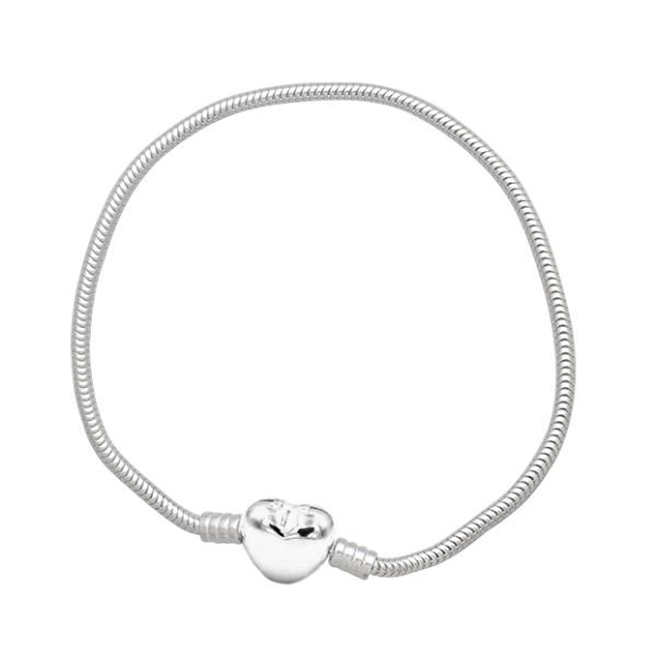 Pulseira De Prata Para Berloques Fecho Coração 17Cm