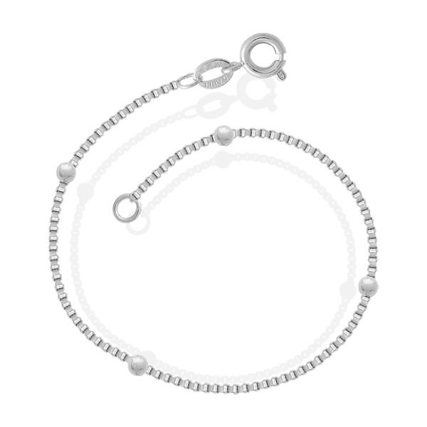 Pulseira De Prata Veneziana Com 4 Bolas 18Cm