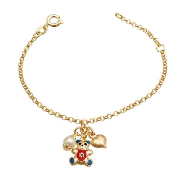 Pulseira Infantil 1 Ursinho 1 Pérola 1 Coração