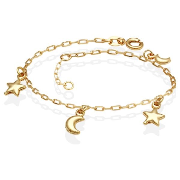 Pulseira Infantil Com Duas Luas E Duas Estrelas 12Cm