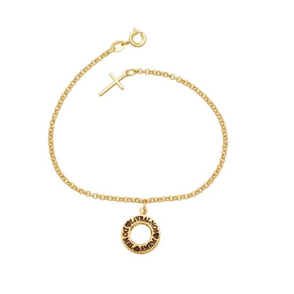 Pulseira Medalha Vazada Livrai-nos Do Mal Amém Com Resina E Cruz