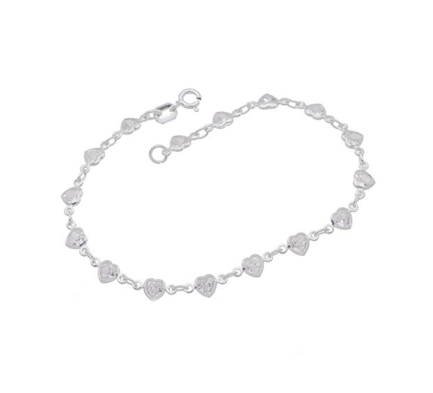 Pulseira Prata Com 16 Coração Cristal