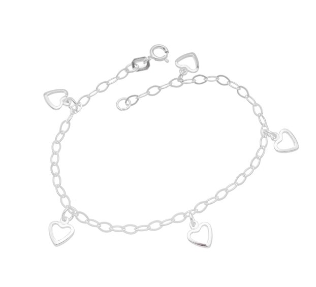Pulseira Prata Com 5 Coração Pendurado