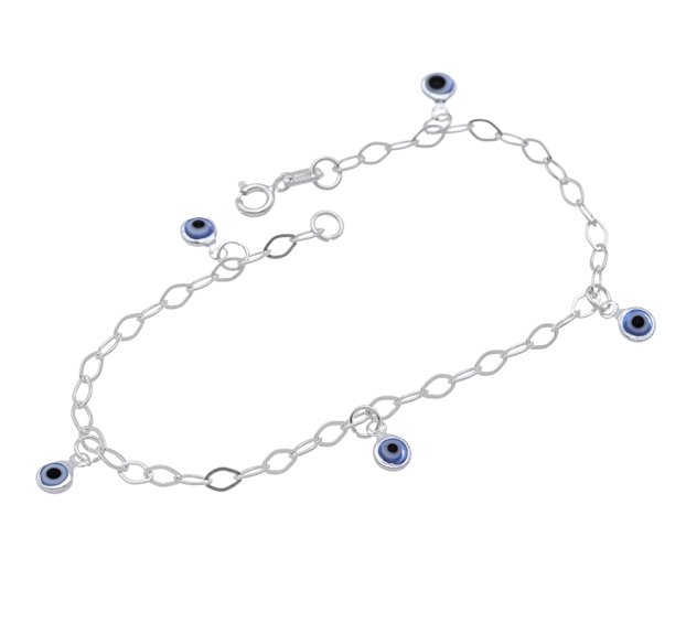 Pulseira Prata Com 5 Olho Grego Pendurado