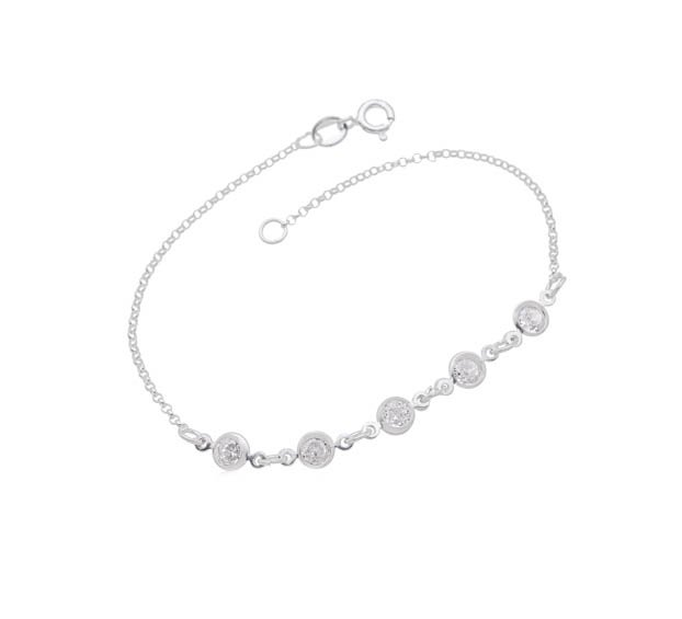 PULSEIRA PRATA COM 5 PEDRA CRISTAL
