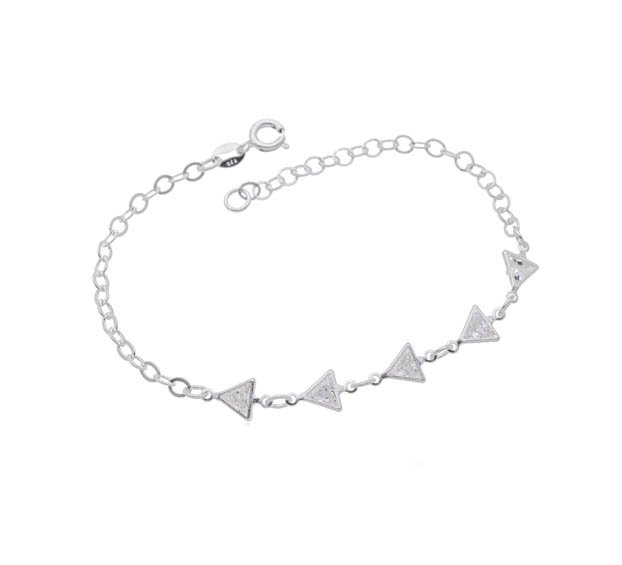 Pulseira Prata Com 5 Triangulos Cristal