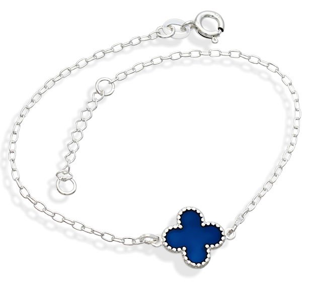 PULSEIRA PRATA TREVO VIRGINIA RESINA AZUL