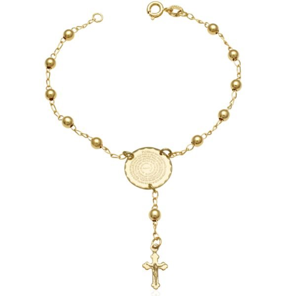 Pulseira Terço De Mão Com Pai Nosso E Cruz Pendurada Com Bola