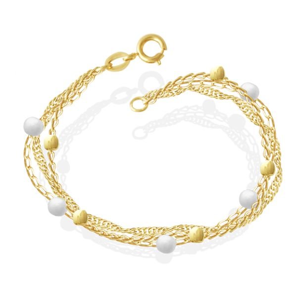 Pulseira Tripla Com Bolinha E Pérola 3Mm 18Cm