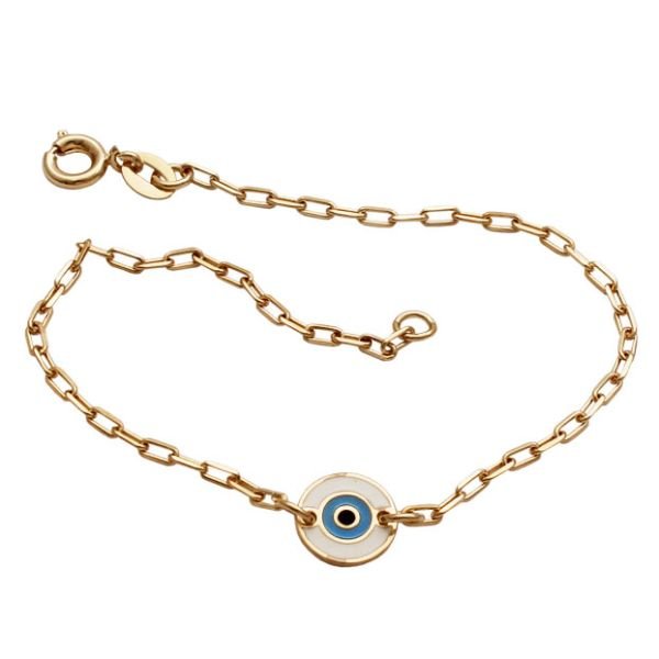 Tornozeleira Cartie Com Olho Grego Com Resina Branco Azul Preto