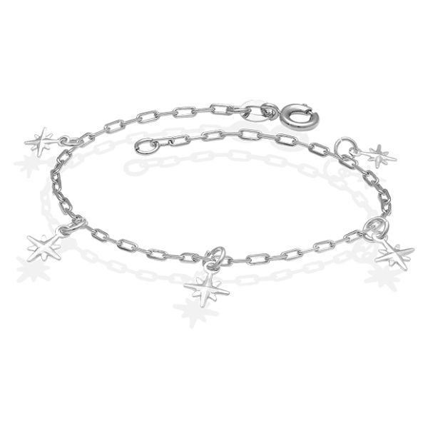 Tornozeleira De Prata Cadeado Elo Longo Com 5 Estrelas Estampadas 23Cm