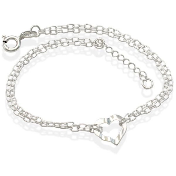 Tornozeleira De Prata Dupla Com Coração Martelado 23Cm